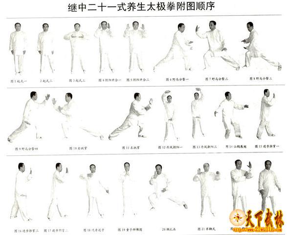 “继中二十一式养生太极拳”的创编,旨在继承和弘扬中华民族优秀传统文化,它的核心是静、极静,它注重养生,强调心练,充分显示出神、意、气在行拳中的特有作用,它“以老子之道定拳势、以中庸之道定拳风”,重在修炼自我,提升自我,以儒家“仁者爱人”之见推广太极之道,普及太极拳之法,达到养生健身之效。