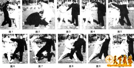 拳谚说:“练拳无人似有人”,这是前辈练太极拳求功的经验,强调了练拳应在意念上下功夫,意应先于形,高于形。练拳走架要有目的,并且要有具体的目的,通过练拳增强形象思维能力。但是,能做到“练拳无人似有人”之举,并不是件容易之事,真正能按这个拳谚练拳者很少。其原因是多方面的,主要原因就是练拳中要认真追求这个原则。我的体会是,除了老师的指点外,自己要注重研究每个拳势的基本技击内涵。解决练拳的难题,须得循序渐进求功;理清练拳之举,须得研究自身之举。要遵循知己知彼的技击原则,第一先知己,知己须得知道自己的内劲是否潜转,意形能否相随,内劲是否送至四梢,圆转是否有浑厚的劲。其次要研究拳架本身圆转的特点,是大圆还是小圆。要研究圆的轨迹是逆时针还是顺时针,还要区别是逆缠丝还是顺缠丝。因为弄明白这些道理,求技击才能有依据。第二知彼,首先能推测人们共同的活动心理,要以辩证对立统一规律推导整理,以己推彼,展开丰富想象力。其次,要在划圆出方上细研究,圆转求引化,出方求刚发。依照拳架中的客观划圆动作为基础,以对方背空为目标,想象出转的引化,进攻的武器与气头。要依势而用招,见机活用劲。现以陈氏太极拳的金刚捣碓为例,介绍依势求技击的过程,供初学者借鉴,以提高思维想象能力,加速太极功夫的增长。