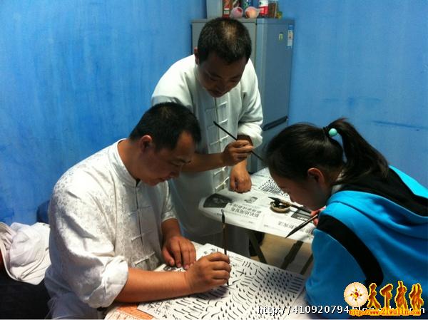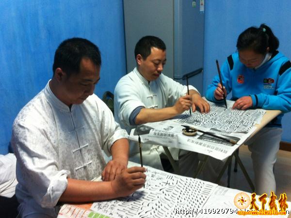 太极和书法的练习都强调“内求”,只有经过千百次与自己内心交流,沟通,乃至斗争,才可能茅塞顿开,豁然开朗。从而增强意境,气势,韵味,节奏感,美感和功力。同时通过学习、欣赏、研究书法,引起共鸣和丰富的联想,有助于提高太极拳体悟的真彻感和创造力。”