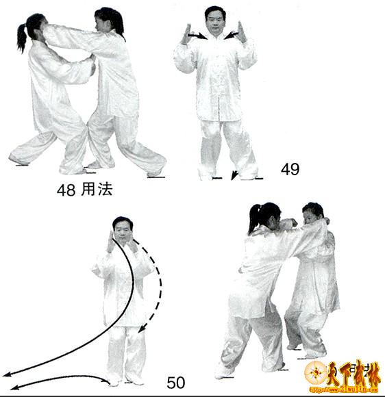 【技击方法】两手分开以阻挡对方攻击我头部(图50用法)。