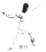 平剑,剑刃朝前由左向右或由右向左为斩,力达剑身。(图11、12)