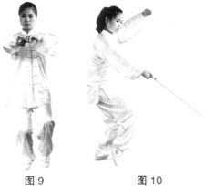 注意:上步要轻要快,注意身体各部位与剑的协调配合。