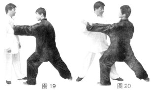 (2)乙上左步出左掌,攻打甲方胸部。(图19)