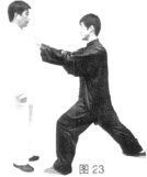 (2)乙上步穿掌,攻击甲咽喉。(图23)