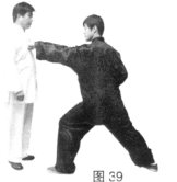 (2)乙上左步冲左拳攻击甲胸腹部。(图39)