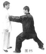 (2)乙左脚进步成左弓步,出左掌推击甲胸部。(图85)