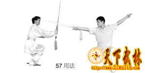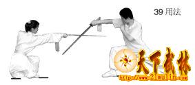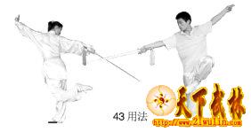剑向后撩动作以攻击对方手臂或截击其手中器械(图43用法)。