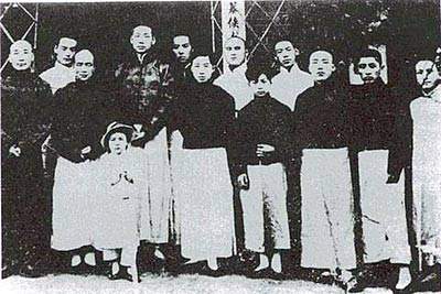 韩慕侠及其弟子合影。其中个子最高者为韩慕侠,左六为周恩来